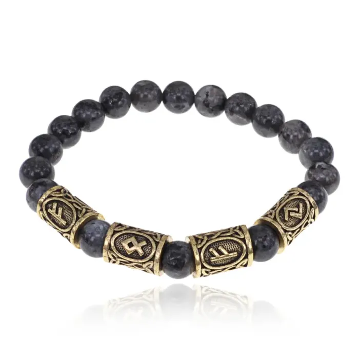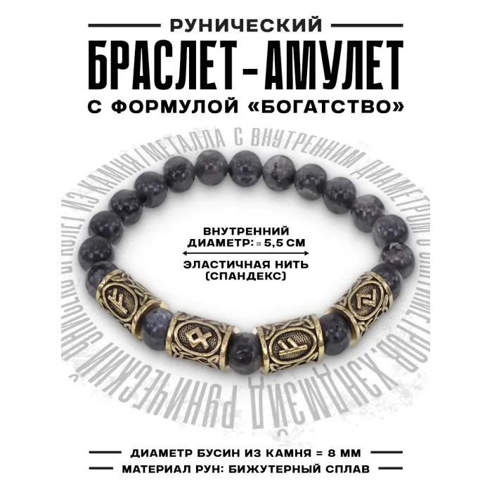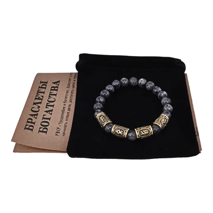 Рунический браслет Богатство и преумножение с нат.камнем Лабрадор 8мм BSRQ-23