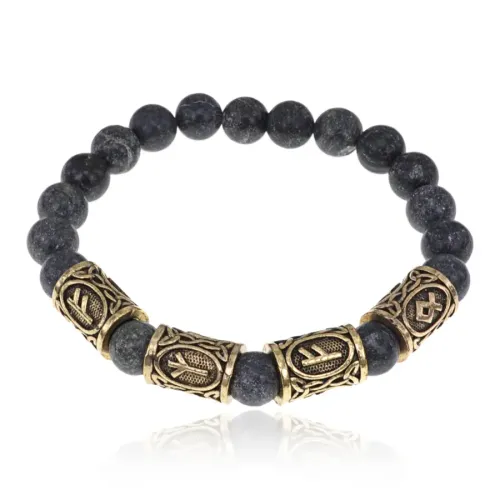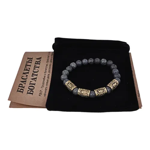 Рунический стрейч-браслет с натуральным камнем змеевик и символами богатства и благосостояния.