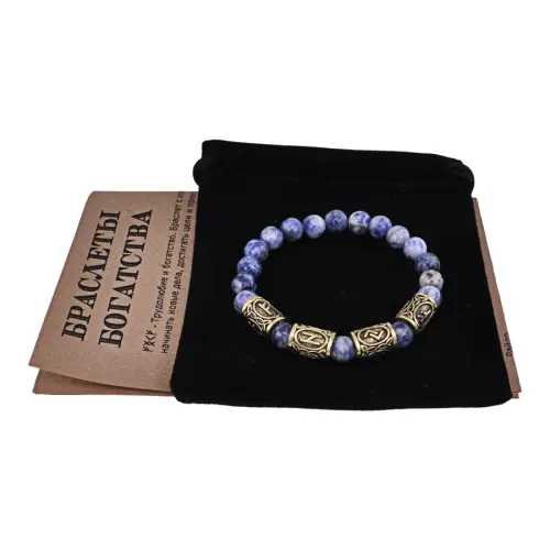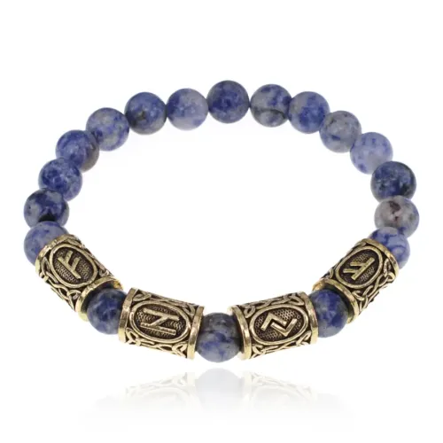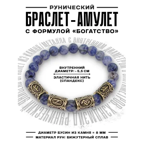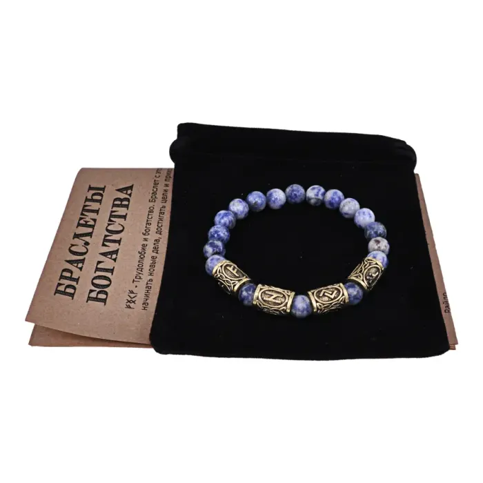 Рунический браслет Богатство и финансовая свобода с нат.камнем Содалит 8мм BSRQ-27