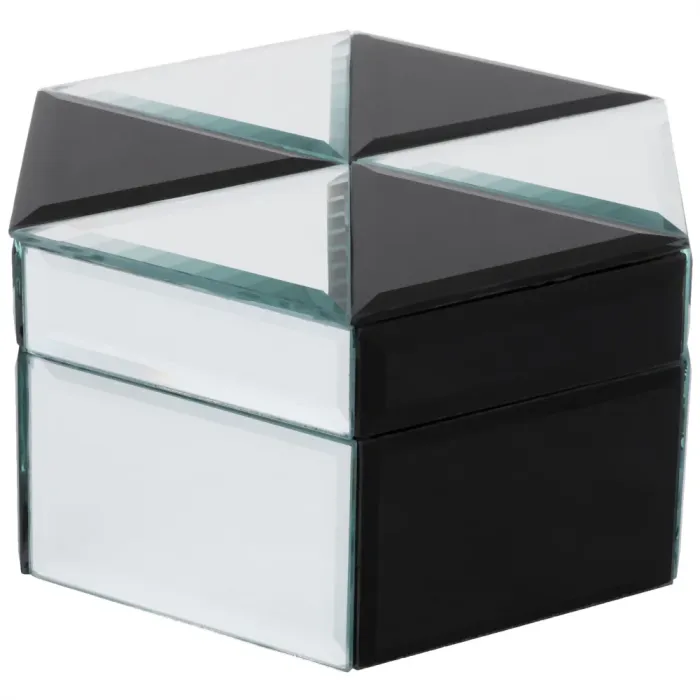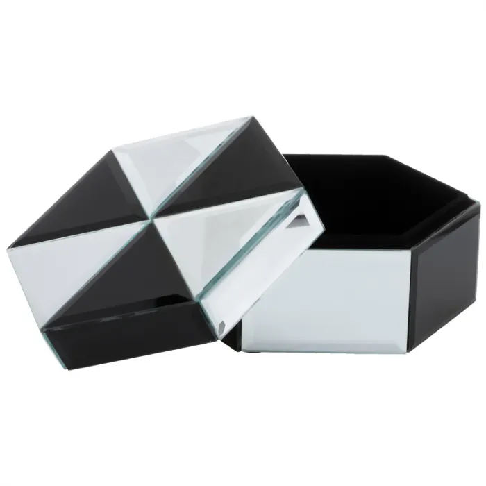 Конструкция шкатулки выполнена из качественного МДФ с добавлением стеклянных элементов. Эти материалы обеспечивают долговечность и эстетическую привлекательность изделия. Компактные размеры позволяют разместить шкатулку на любой поверхности без ущерба для пространства. Элегантный внешний вид гармонично вписывается в различные стили оформления помещений.