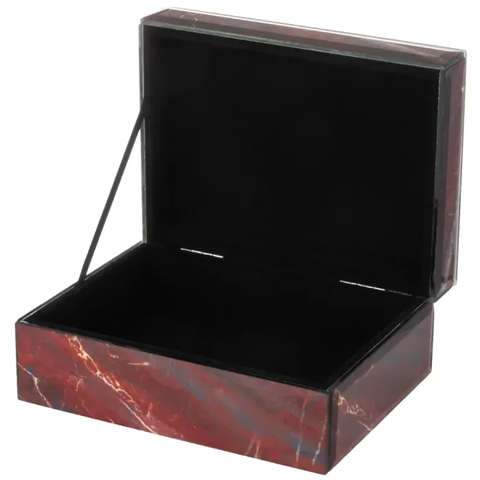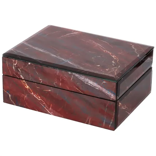 Конструкция шкатулки выполнена из МДФ и стекла, обеспечивая прочность и долговечность. Компактные размеры позволяют разместить её на полке или столе без лишних хлопот. Эстетическая привлекательность изделия гармонично сочетается с функциональностью, создавая удобное пространство для хранения небольших предметов.