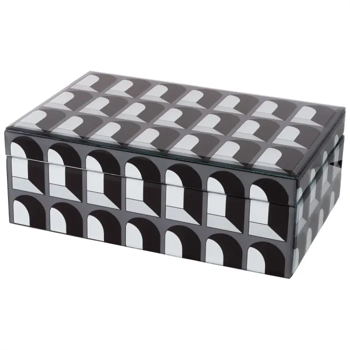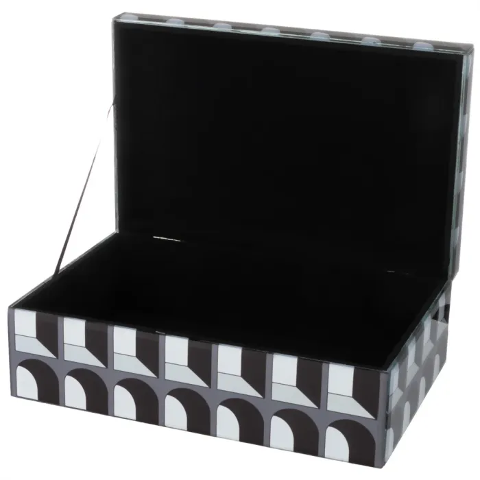 Конструкция шкатулки выполнена из прочного МДФ и стекла, обеспечивая долговечность использования. Компактные размеры позволяют разместить её на любой поверхности, а стильный внешний вид добавляет элегантности окружающему пространству.
