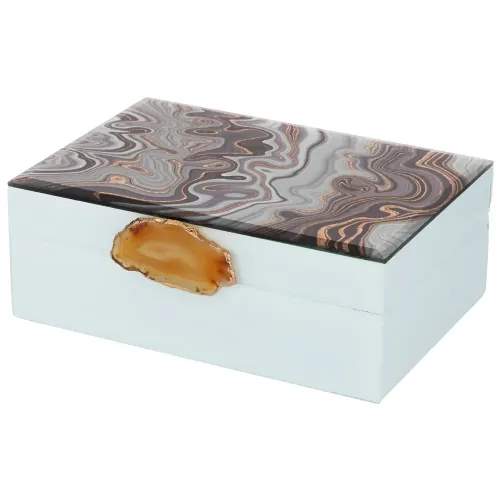 Конструкция шкатулки обеспечивает удобное хранение различных предметов. Использование МДФ делает её прочной и долговечной, а стеклянные элементы добавляют эстетической привлекательности. Шкатулка легко вписывается в интерьер благодаря своему универсальному дизайну.