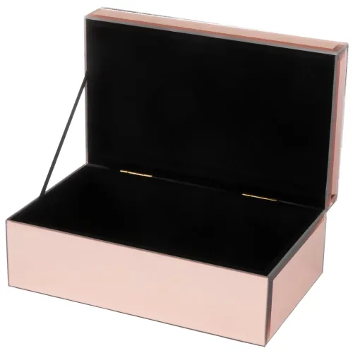 Конструкция выполнена из МДФ и стекла, обеспечивая долговечность и эстетичность. Шкатулка не только функциональна, но и служит декоративным элементом благодаря элегантному внешнему виду. Подходит как для личного использования, так и в качестве подарка.