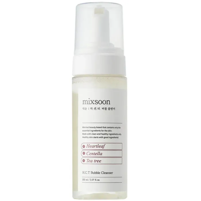 Пенка для лица очищающая H.C.T. Bubble Cleanser от Mixsoon объемом 150 мл мягко и бережно очищает кожу, не вызывая сухости. Формула продукта обогащена натуральными экстрактами чайного дерева, хауттюйнии и центеллы азиатской, которые увлажняют и успокаивают кожу. Пенка подходит для чувствительной, раздражённой и проблемной кожи, склонной к акне.