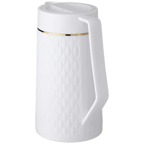 Стеклянная колба внутри термоса сохраняет вкус напитка без посторонних привкусов, а пластиковый корпус защищает её от повреждений. Удобная ручка и носик позволяют легко наливать жидкость. Дизайн изделия сочетает в себе функциональность и современный стиль.