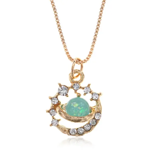 Кулон в виде планеты из бижутерного сплава со стеклянными вставками и стразами.