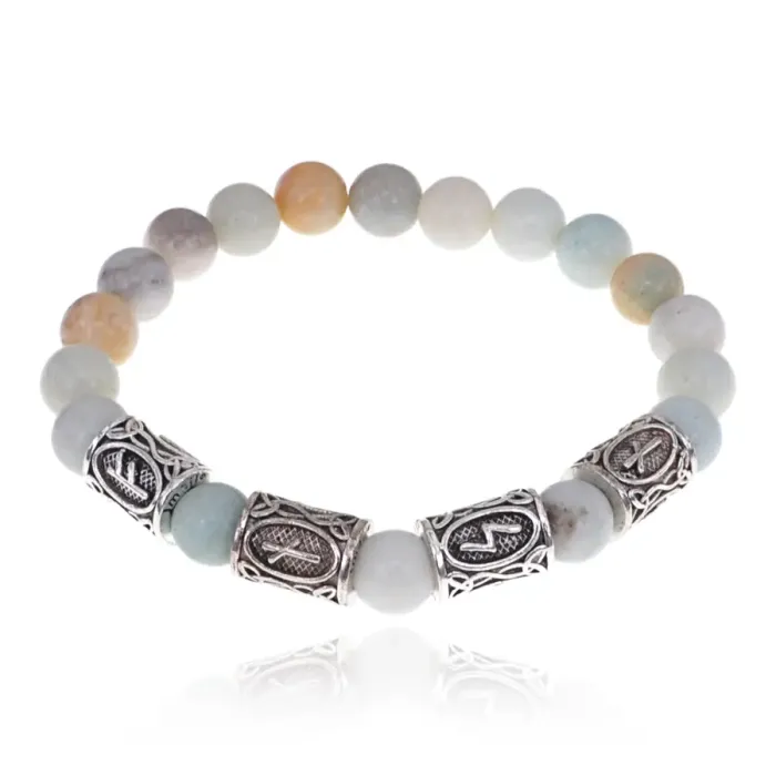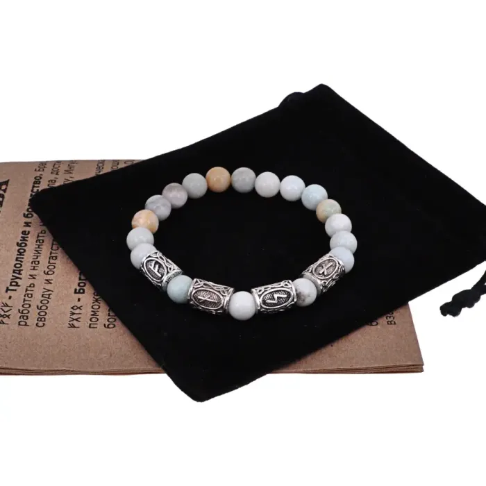 Рунический браслет Богатство и позитив с нат.камнем Амазонит 8мм BSRR-14