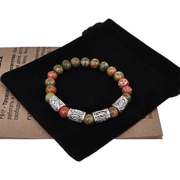 Рунический браслет Богатство и оздоровление с нат.камнем Унакит 8мм BSRR-17