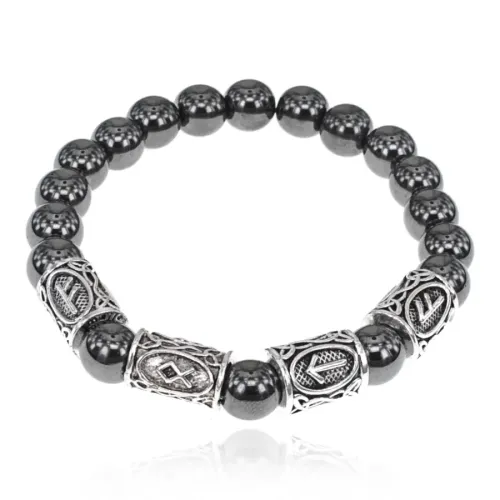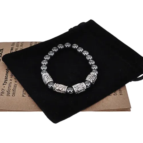 Рунический браслет Богатство и победа с синт.камнем Гематит 8мм BSRR-21