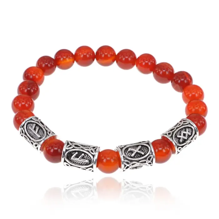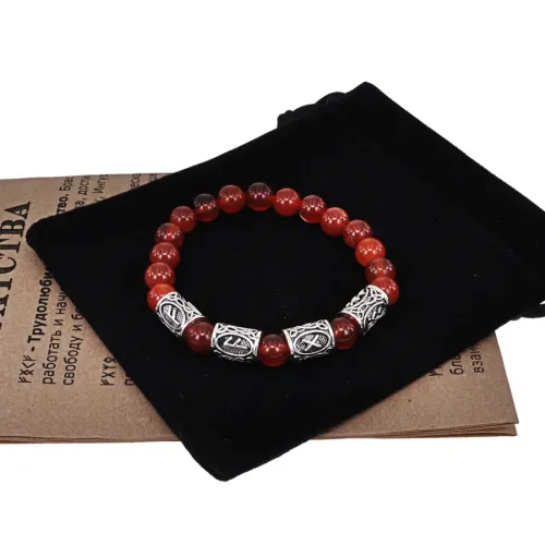 Рунический браслет Богатство и гармония в отношениях с нат.камнем Сердолик 8мм BSRR-22
