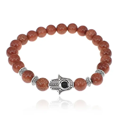 Браслет-амулет Хамса с синт. камнем Коричневый авантюрин 10мм BSHS-01
