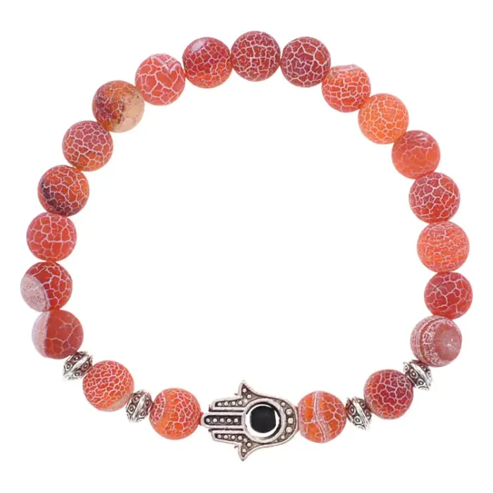 Браслет-амулет Хамса с нат. камнем Африканский агат 10мм BSHS-04
