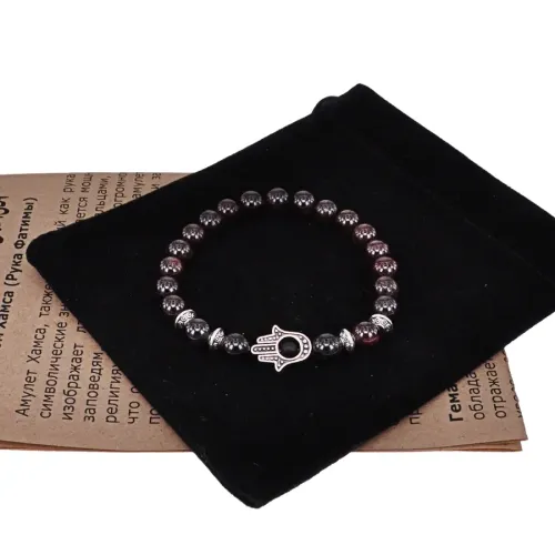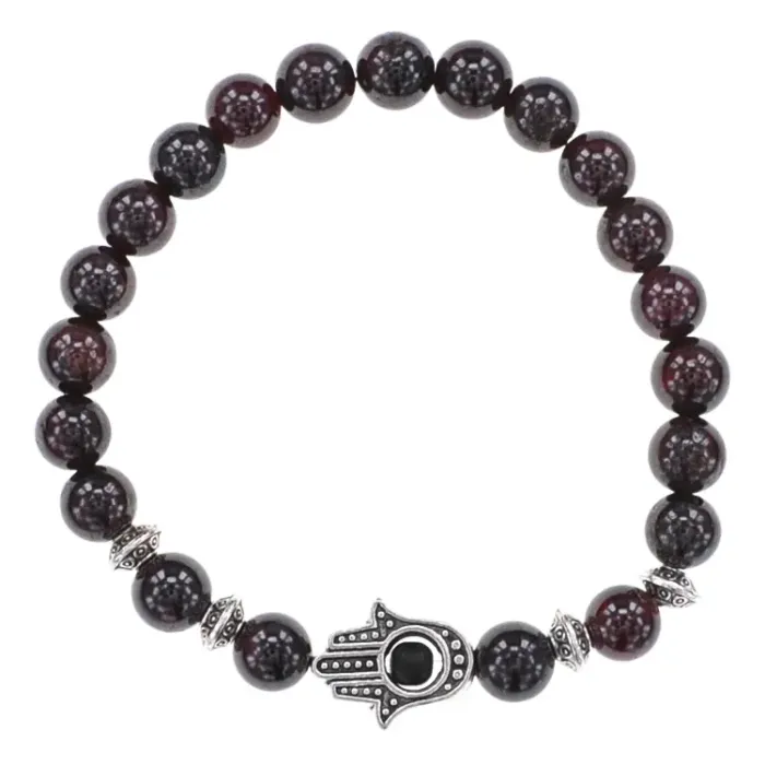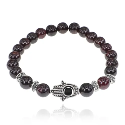 Браслет-амулет Хамса с нат. камнем Гранат 10мм BSHS-06