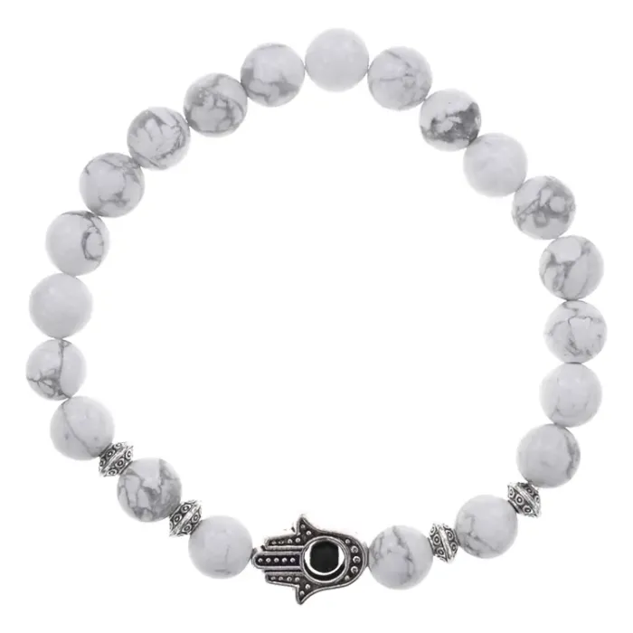 Браслет-амулет Хамса с нат. камнем Кахолонг 10мм BSHS-07