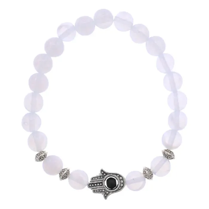 Браслет-амулет Хамса с синт. камнем Лунный камень 10мм BSHS-11