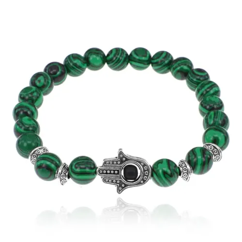 Браслет-амулет Хамса с синт. камнем Малахит 10мм BSHS-12
