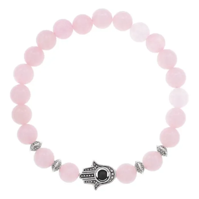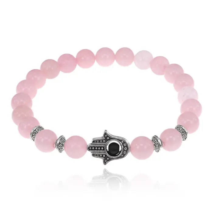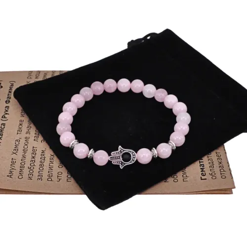 Браслет-амулет Хамса с нат. камнем Розовый кварц 10мм BSHS-15