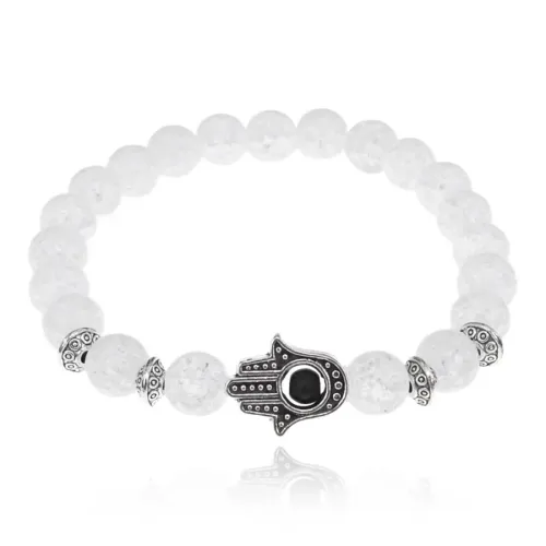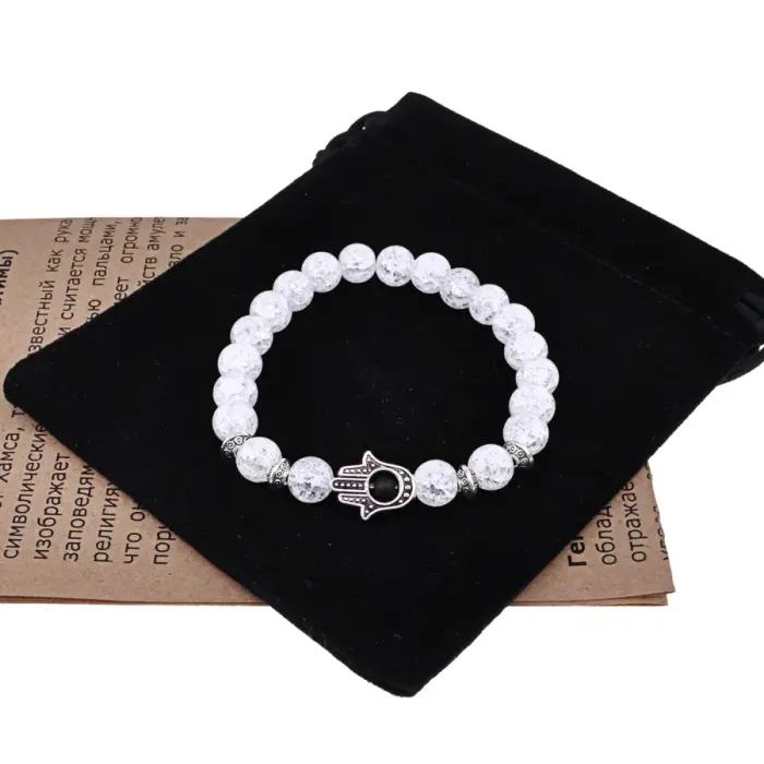 Браслет-амулет Хамса с синт. камнем Сахарный кварц 10мм BSHS-16