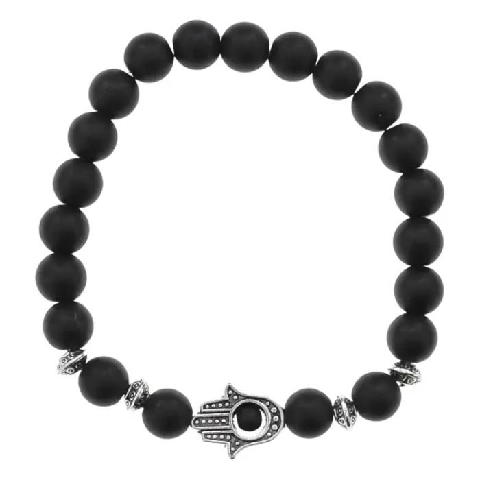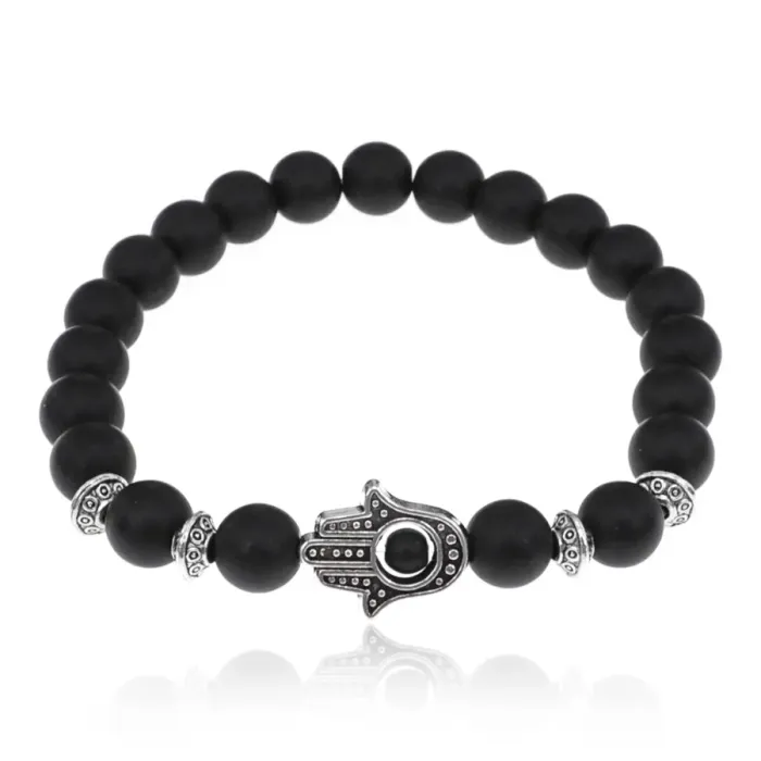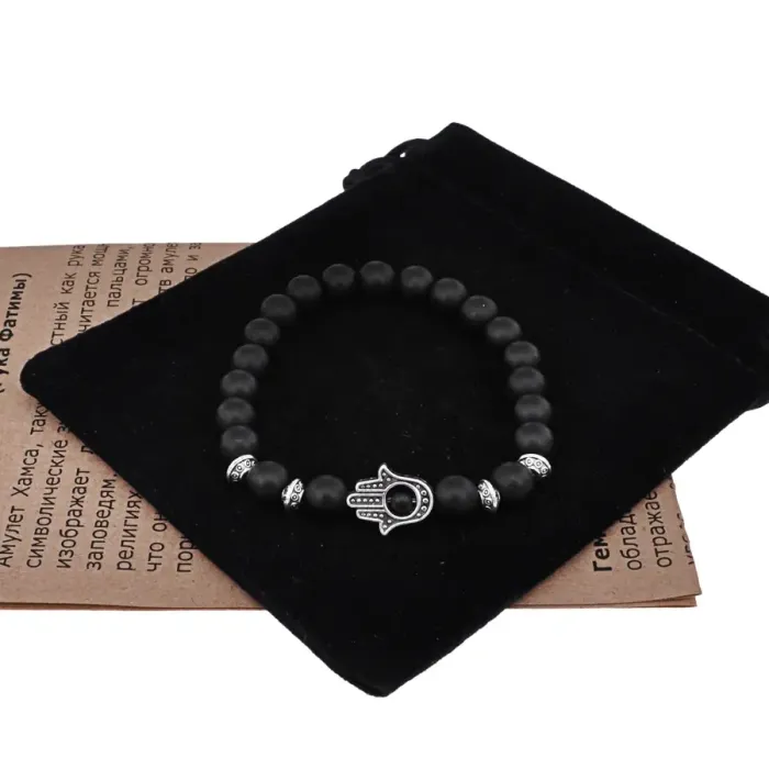 Браслет-амулет Хамса с синт. камнем Шунгит 10мм BSHS-24