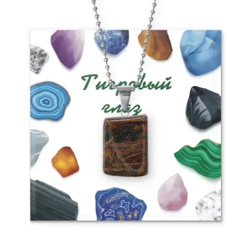 Кулон с Тигровым глазом на цепочке KUL03-12