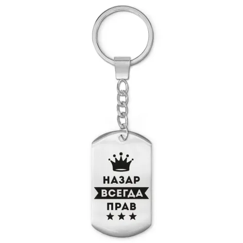 Именной брелок-жетон из нержавеющей стали с лазерной гравировкой на одной стороне.