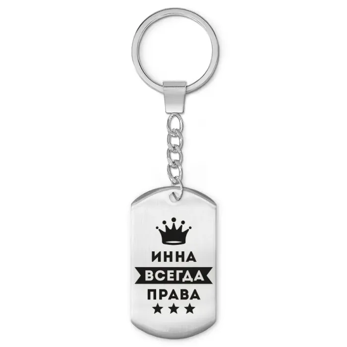 Именной брелок-жетон из полированной нержавеющей стали с лазерной гравировкой изображения на одной стороне.