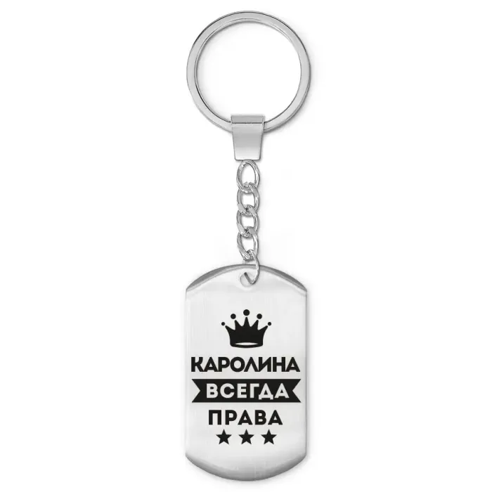 Именной брелок-жетон из полированной нержавеющей стали с лазерной гравировкой.