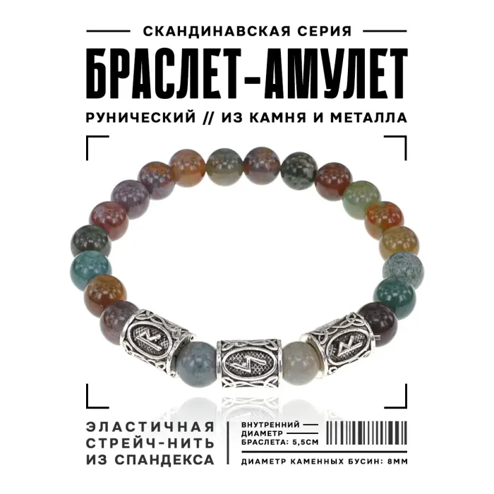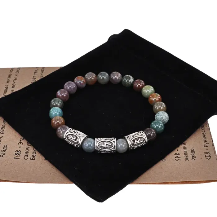 Рунический стрейч-браслет с натуральным камнем яшма и символами рун.