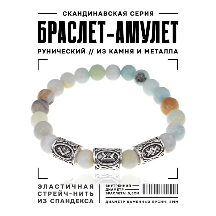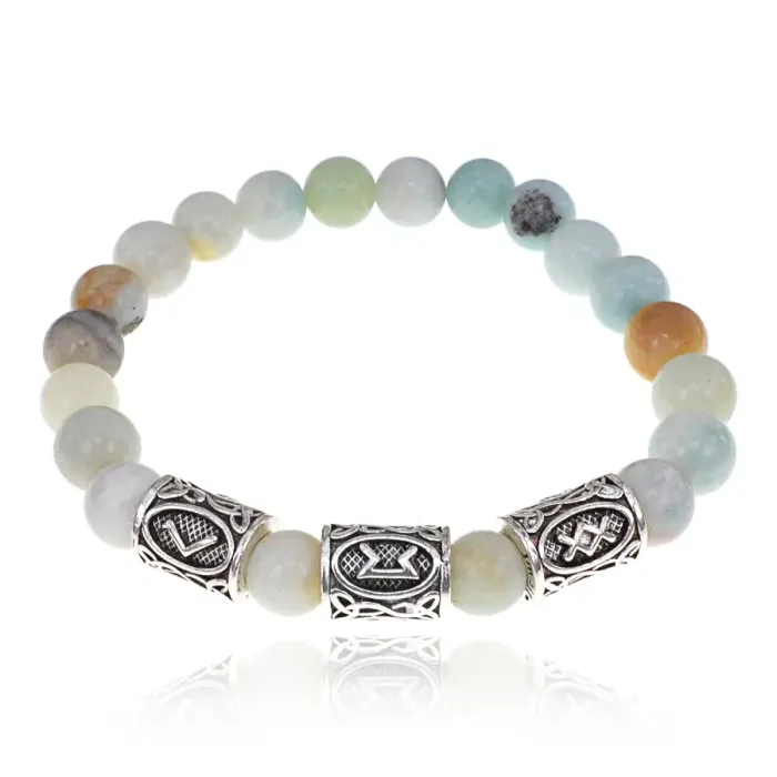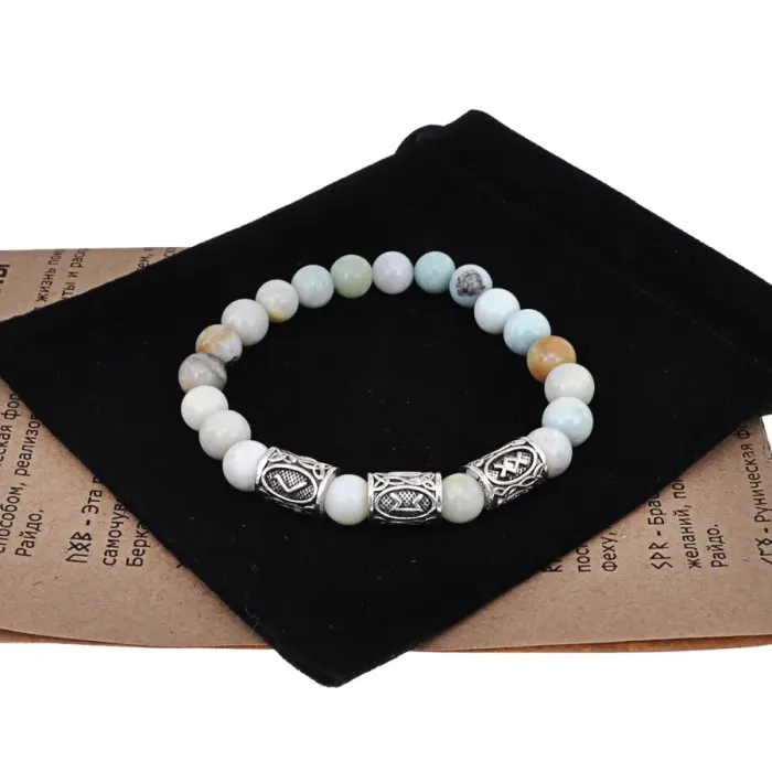 Рунический браслет Улучшение самочувствия с нат.камнем Амазонит 8мм BSRH1-009
