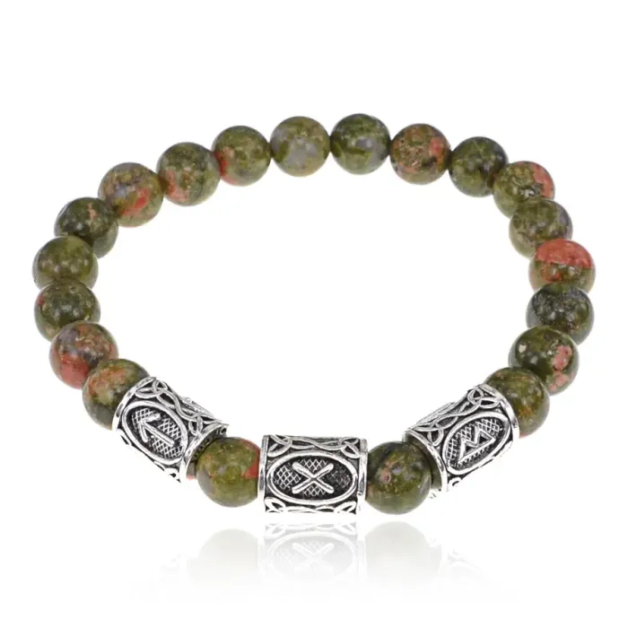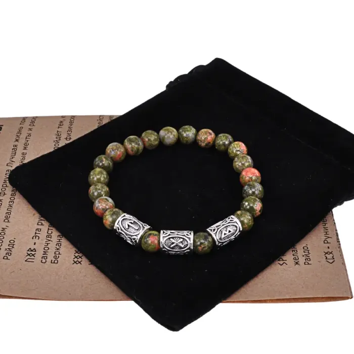 Рунический браслет Коррекция отношений с нат.камнем Унакит 8мм BSRH1-011