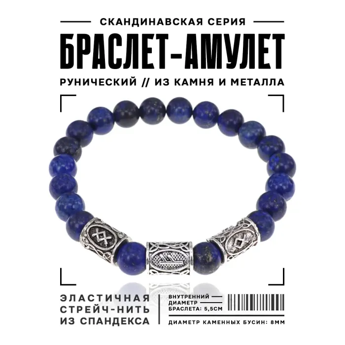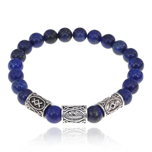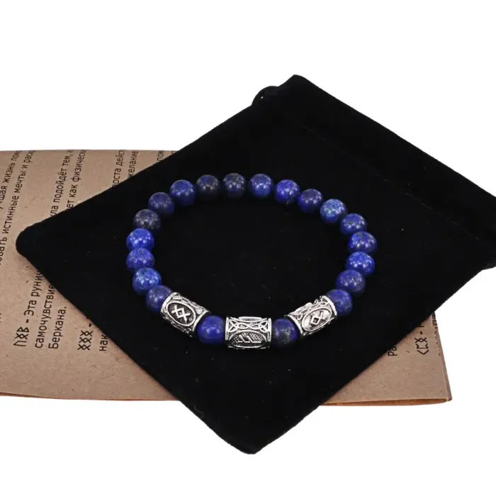 Рунический браслет Денежный канал с нат.камнем Лазурит 8мм BSRH1-018