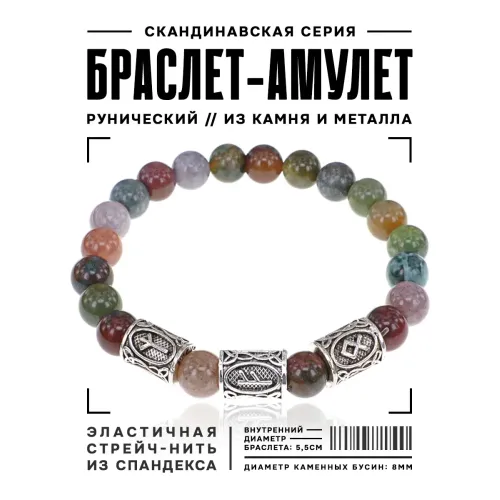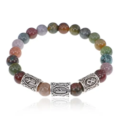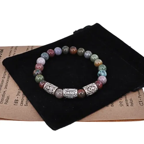 Рунический браслет Защита благосостояния с нат.камнем Яшма 8мм