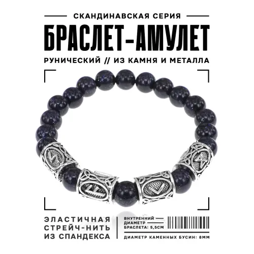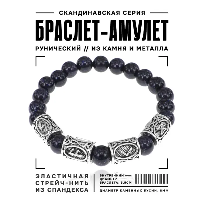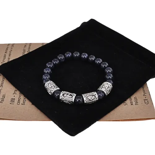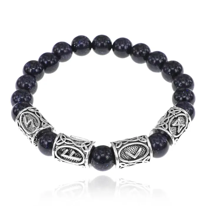 Рунический браслет Стремление к знаниям с синт.камнем Авантюрин синий 8мм BSRH1-036