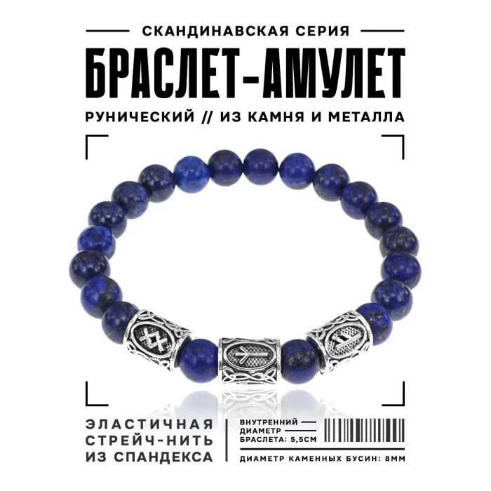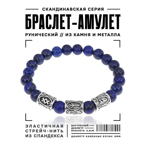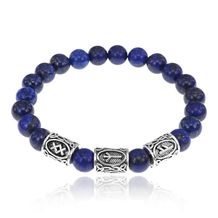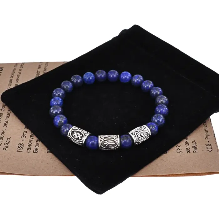 Рунический браслет Подключение к денежному каналу с нат.камнем Лазурит 8мм BSRH1-038