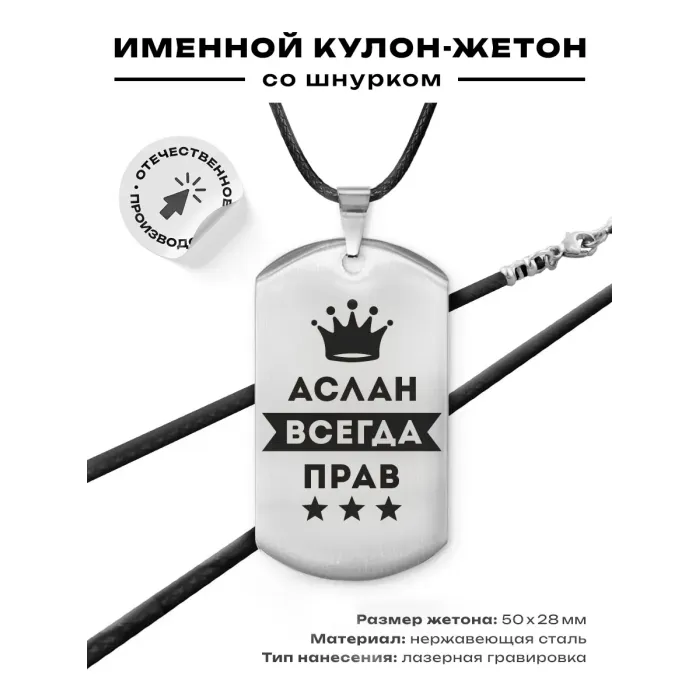 Жетон на шнурке Аслан Всегда прав ACZ-262