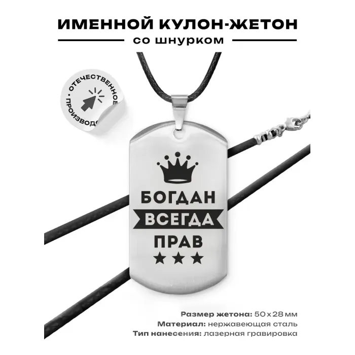 Жетон на шнурке Богдан Всегда прав ACZ-263