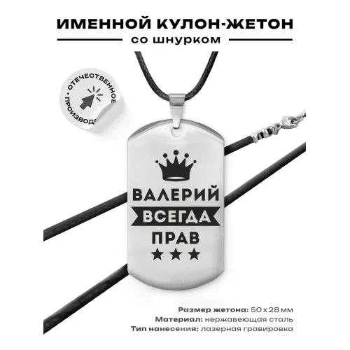 Жетон на шнурке Валерий Всегда прав ACZ-267