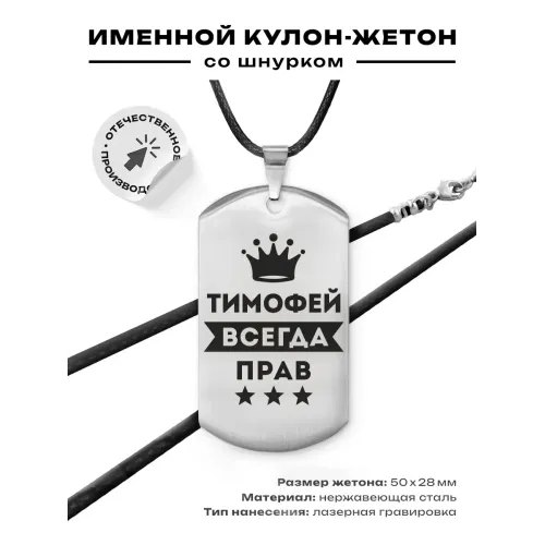 Жетон на шнурке Тимофей Всегда прав ACZ-326