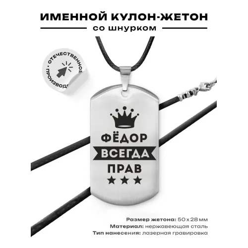 Жетон на шнурке Федор Всегда прав ACZ-328
