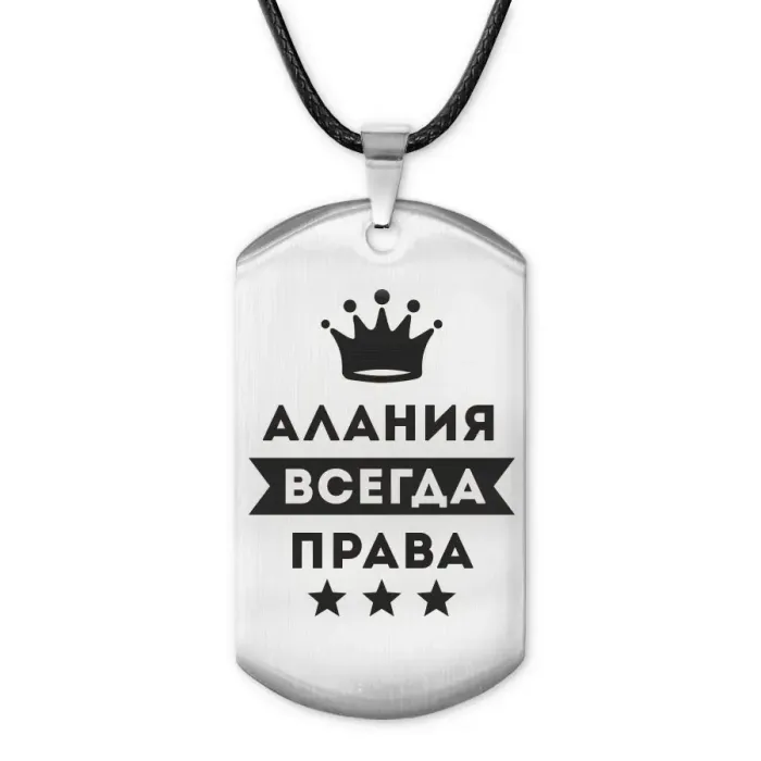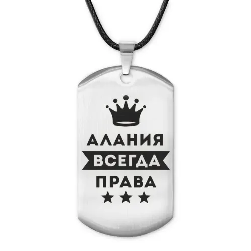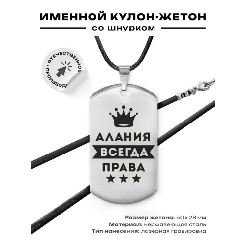 Размеры и комплектация: Размер жетона 50х28 мм. В комплект входит шнурок с застёжкой. Упаковка — прозрачный пакет.