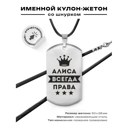 Жетон на шнурке Алиса Всегда права ACZ-341