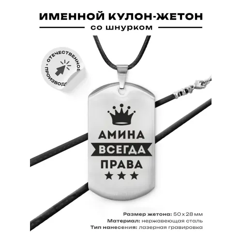 Размеры и комплектация: Размер жетона: 50х28 мм. В комплекте шнурок с застёжкой. Упаковка: прозрачный пакет.