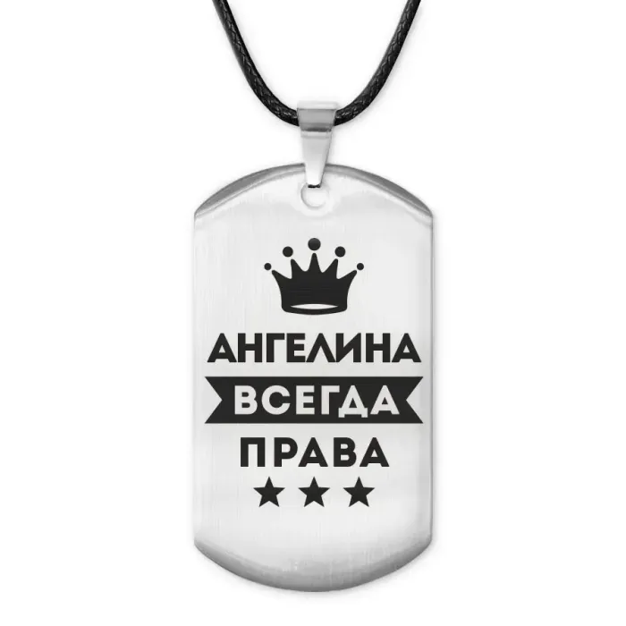 Жетон на шнурке Ангелина Всегда права ACZ-346