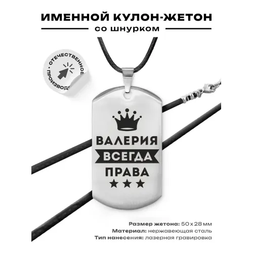 Жетон на шнурке Валерия Всегда права ACZ-352