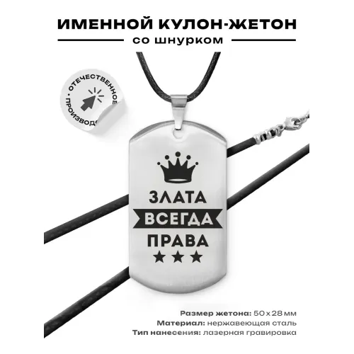 Размеры и комплектация: Размер жетона 50х28 мм. В комплекте шнурок с застёжкой. Упаковка — прозрачный пакет.