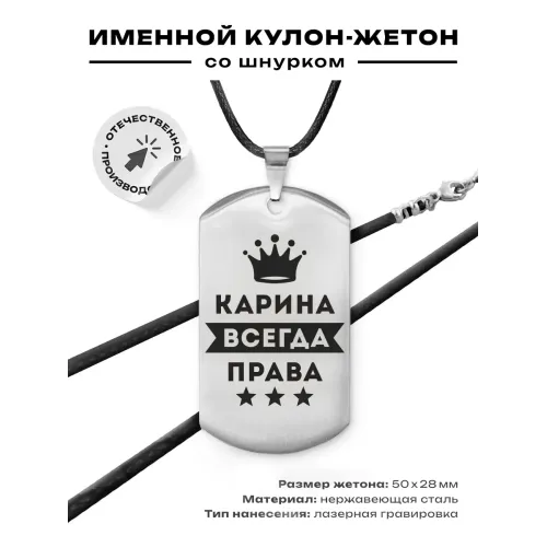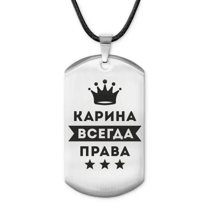 Именной жетон на шнурке из нержавеющей стали с лазерной гравировкой.