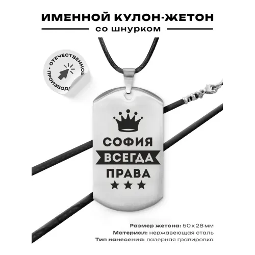 Размеры и комплектация: Размер 50х28 мм. Комплектуется шнурком с застёжкой. Упаковка — прозрачный пакет.