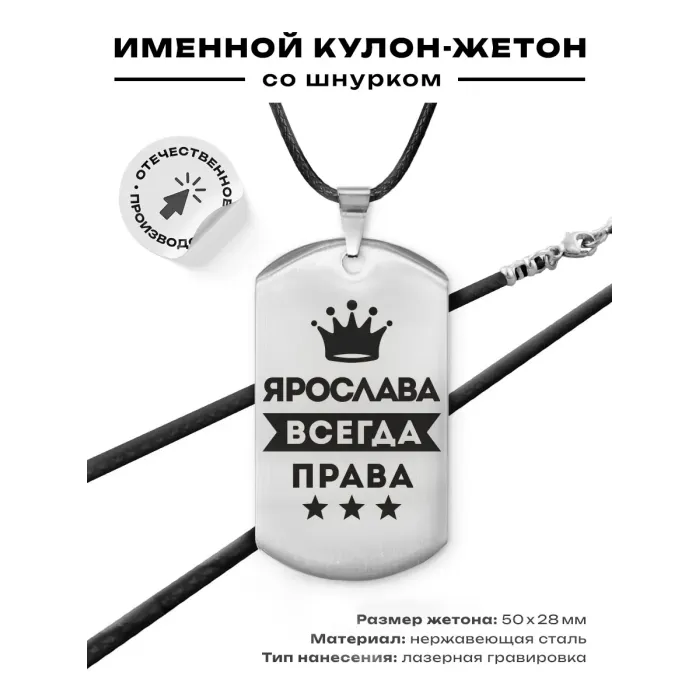 Жетон на шнурке Ярослава Всегда права ACZ-423