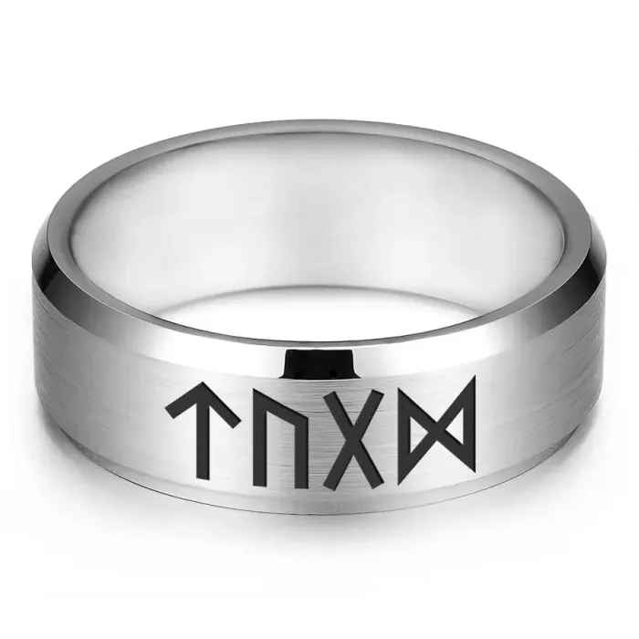 Кольцо с рунической формулой 'Мужская сила' — аксессуар из нержавеющей стали с лазерной гравировкой.